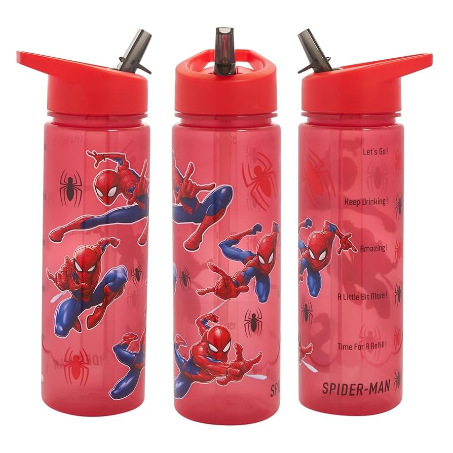 Marvel Spider-man Water Tracker Bottle Flip Up Straw 600ml –